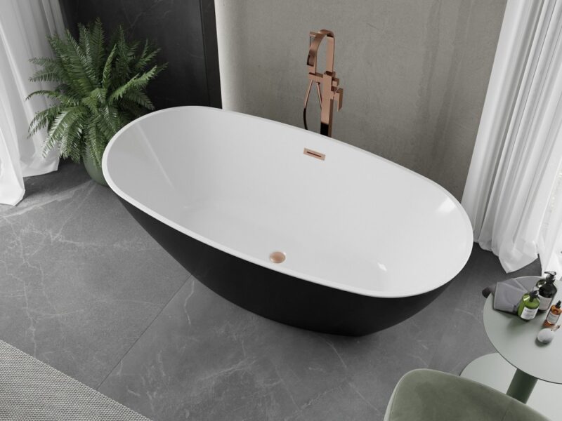 MEXEN/S – Eris voľne stojaca vaňa 180 x 95, biela/čierna, sifón a prepad meď kartáčovaná 53441809575-65