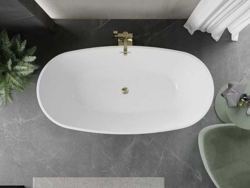 MEXEN/S – Eris voľne stojaca vaňa 180 x 95, biela/čierna, sifón a prepad zlatá 53441809575-50