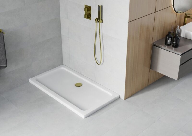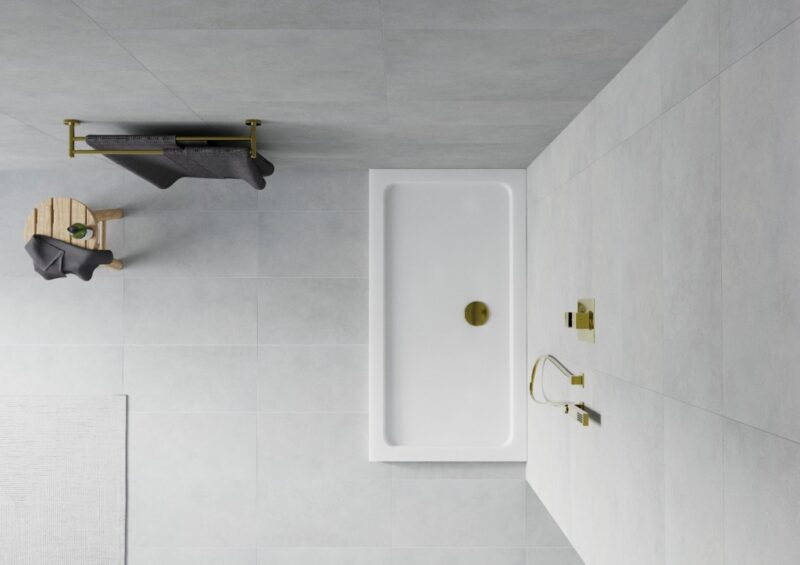 MEXEN/S – Flat sprchová vanička obdĺžniková slim 120 x 70, biela + zlatý sifón 40107012G