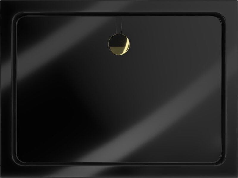 Technické dáta: Rozmer: 120 x 90 x 5 cm Čierna farba Typ: Obdĺžnikový, Slim Materiál: Sanitárny akryl Vystužené dno Kompletný so sifónom vyčisteným zhora Priemer odtoku: 90 mm Povrchová úprava korku: zlatá(GT) Ean: 5907709164840