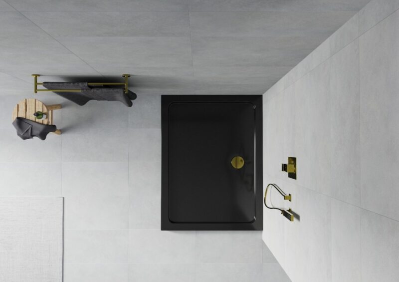 MEXEN/S – Flat sprchová vanička obdĺžniková slim 140 x 80, čierna + zlatý sifón 40708014G