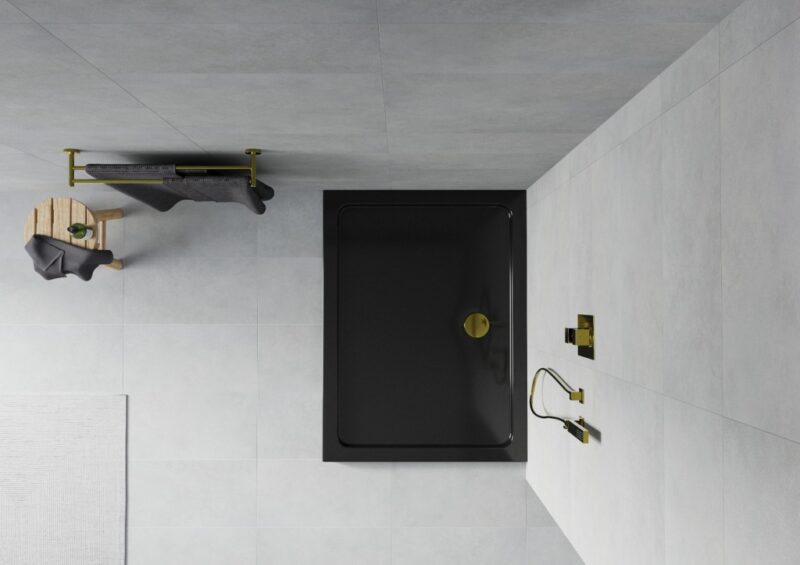 MEXEN/S – Flat sprchová vanička obdĺžniková slim 80 x 70, čierna + zlatý sifón 40707080G