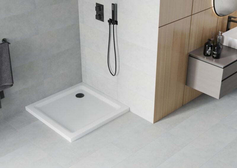 MEXEN/S – Flat sprchová vanička štvorcová slim 80 x 80, biela + čierny sifón 40108080B