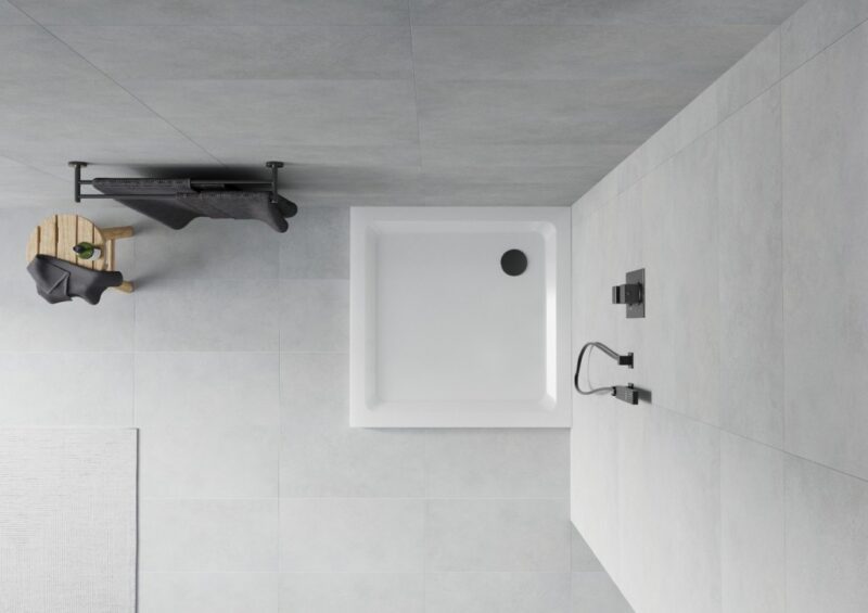 Technické dáta: Rozmer: 80x80x5 cm biela farba Typ: štvorcový, tenký Materiál: Sanitárny akryl Vystužené dno Kompletný so sifónom vyčisteným zhora Priemer odtoku: 90 mm Povrchová úprava korku: čierna(GT) Ean: 5907709164192