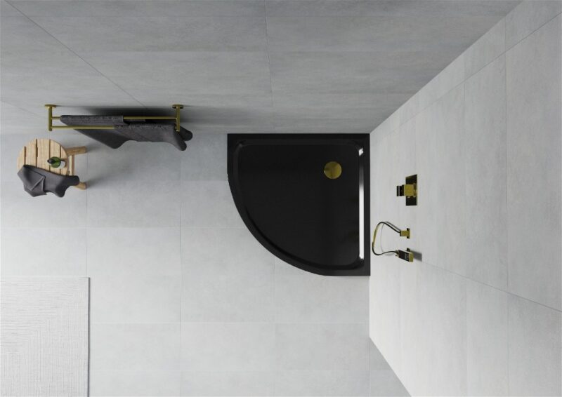 Domovská stránka » Katalóg » MEXEN/S – Flat sprchová vanička štvrťkruhová slim 90 x 90, černá + zlatý sifón 41709090G