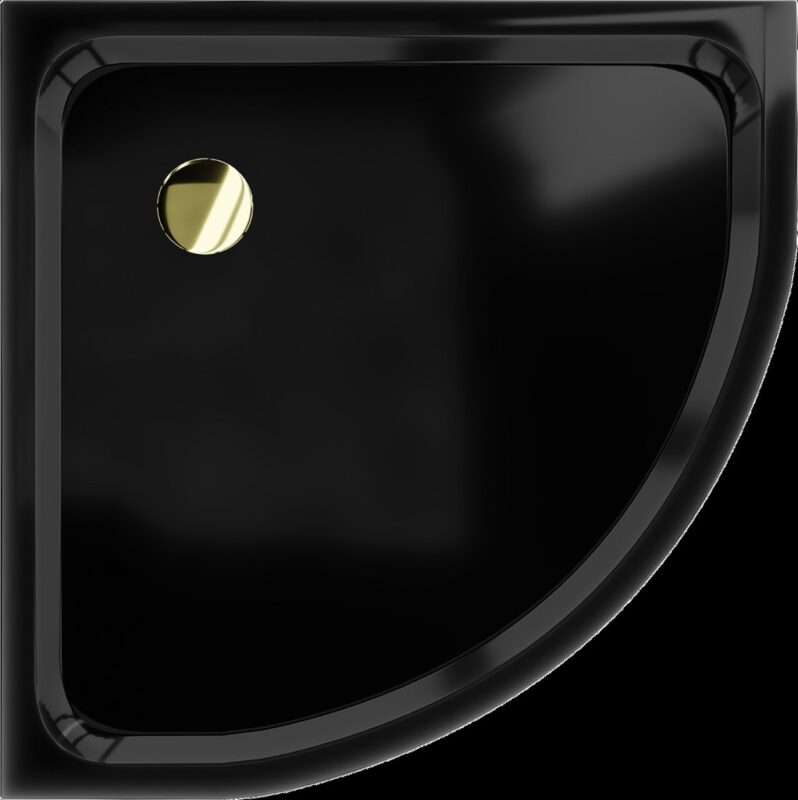 MEXEN/S – Flat sprchová vanička štvrťkruhová slim 90 x 90, černá + zlatý sifón 41709090G