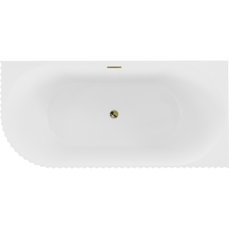 Špecifikácia produktu: Rozmer: 150 x 75 cm Výška: 58 cm Hĺbka: 45,5 cm Inštalácia: Rohová, pravá Materiál: Sanitárny akryl Farba: Matná biela Povrchová úprava: zlatá Štruktúra: Rebrovaná Prepadový otvor: Áno Otvor pre kohútik: Nie Sada obsahuje sifón a zátku click-clack Odolnosť proti matovaniu a UV žiareniu(GT) Ean: 5905315505569