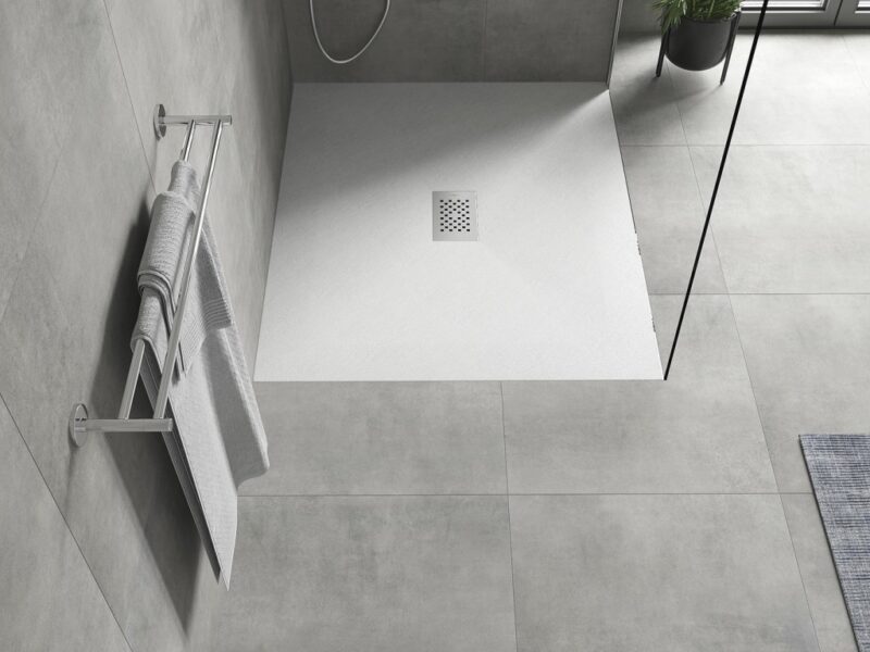 Technické dáta: Rozmer: 110x100x2, 6 cm biela farba Typ: Obdĺžnikový, Ultra plochý Inštalácia: Do podlahy alebo na podlahu Materiál: SMC – plast Kamenná štruktúra Možnosť rezania sprchovej vaničky Odolný výrobok, ktorý sa nedeformuje Maximálna stabilita vďaka dobrej odolnosti proti nárazu Sada obsahuje sifón, ktorý sa čistí zhora Priemer odtoku: 90 mm Povrchová úprava obruby: Inox(GT) Ean: 5905315224323