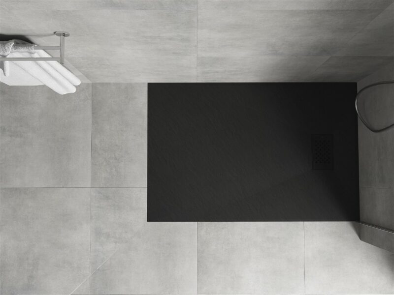 Technické dáta: Rozmer: 130x90x2, 6 cm Čierna farba Typ: Obdĺžnikový, Ultra plochý Inštalácia: Do podlahy alebo na podlahu Materiál: SMC – plast Kamenná štruktúra Možnosť rezania sprchovej vaničky Odolný produkt, ktorý sa nedeformuje Maximálna stabilita vďaka dobrej odolnosti proti nárazu Sada obsahuje sifón, ktorý sa čistí zhora Priemer odtoku: 90 mm Povrchová úprava mriežky: Čierna(GT) Ean: 5905315226686