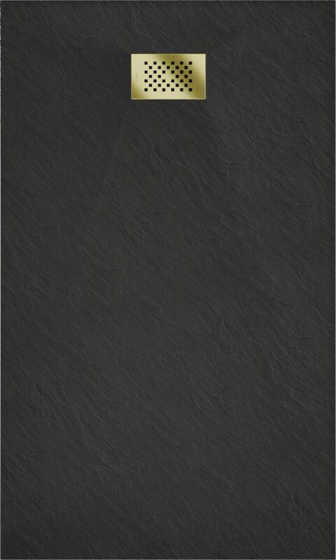 Technické dáta: Rozmer: 140x90x2, 6 cm Čierna farba Typ: Obdĺžnikový, Ultra plochý Inštalácia: Do podlahy alebo na podlahu Materiál: SMC – plast Kamenná štruktúra Možnosť rezania sprchovej vaničky Odolný výrobok, ktorý sa nedeformuje Maximálna stabilita vďaka dobrej odolnosti proti nárazu Sada obsahuje sifón, ktorý sa čistí zhora Priemer odtoku: 90 mm Povrchová úprava mriežky: zlatá(GT) Ean: 5905315226280