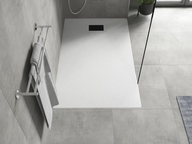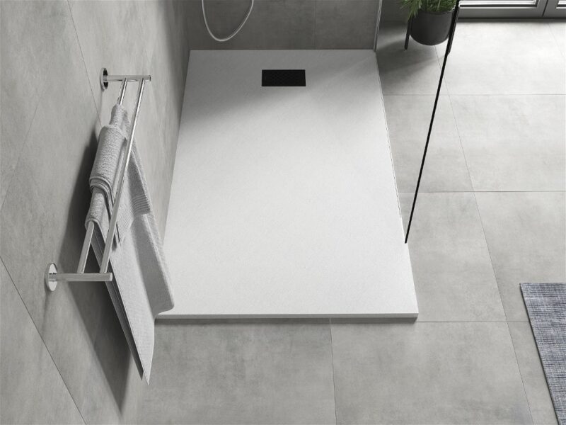 Technické dáta: Rozmer: 150x70x2, 6 cm biela farba Typ: Obdĺžnikový, Ultra plochý Inštalácia: Do podlahy alebo na podlahu Materiál: SMC – plast Kamenná štruktúra Možnosť rezania sprchovej vaničky Odolný produkt, ktorý sa nedeformuje Maximálna stabilita vďaka dobrej odolnosti proti nárazu Sada obsahuje sifón, ktorý sa čistí zhora Priemer odtoku: 90 mm Povrchová úprava mriežky: Čierna(GT) Ean: 5905315225313