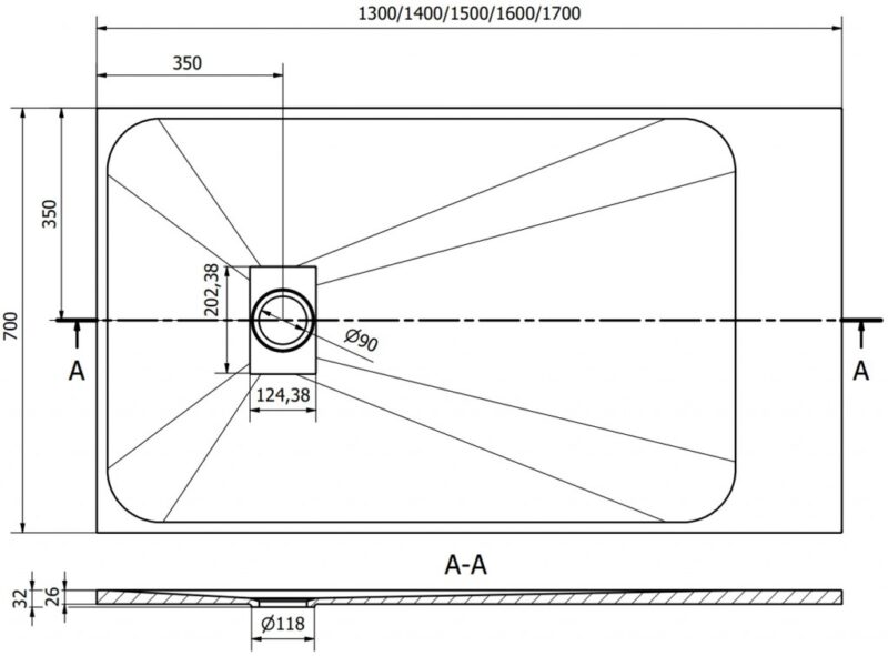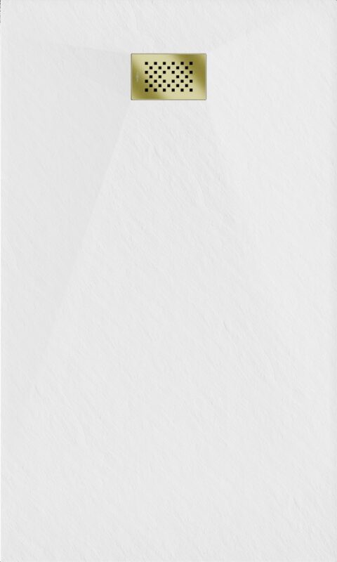 Technické dáta: Rozmer: 150x70x2, 6 cm biela farba Typ: Obdĺžnikový, Ultra plochý Inštalácia: Do podlahy alebo na podlahu Materiál: SMC – plast Kamenná štruktúra Možnosť rezania sprchovej vaničky Odolný produkt, ktorý sa nedeformuje Maximálna stabilita vďaka dobrej odolnosti proti nárazu Sada obsahuje sifón, ktorý sa čistí zhora Priemer odtoku: 90 mm Povrchová úprava mriežky: zlatá(GT) Ean: 5905315224903