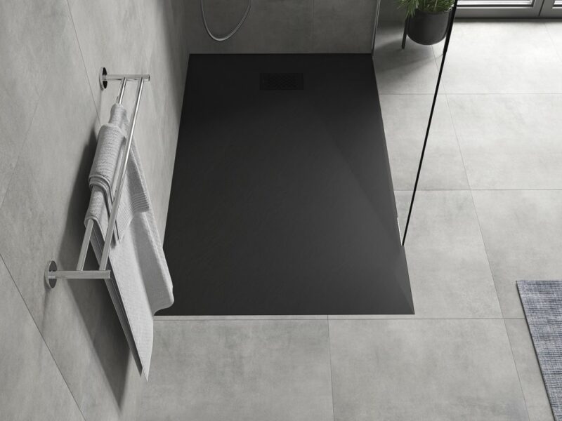 Technické dáta: Rozmer: 150x90x2, 6 cm Čierna farba Typ: Obdĺžnikový, Ultra plochý Inštalácia: Do podlahy alebo na podlahu Materiál: SMC – plast Kamenná štruktúra Možnosť rezania sprchovej vaničky Odolný výrobok, ktorý sa nedeformuje Maximálna stabilita vďaka dobrej odolnosti proti nárazu Sada obsahuje sifón, ktorý sa čistí zhora Priemer odtoku: 90 mm Povrchová úprava mriežky: Čierna(GT) Ean: 5905315226709
