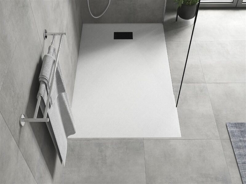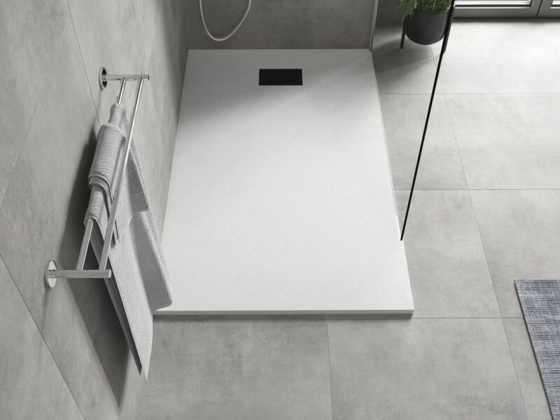 Technické dáta: Rozmer: 160x80x2, 6 cm biela farba Typ: Obdĺžnikový, Ultra plochý Inštalácia: Do podlahy alebo na podlahu Materiál: SMC – plast Kamenná štruktúra Možnosť rezania sprchovej vaničky Odolný produkt, ktorý sa nedeformuje Maximálna stabilita vďaka dobrej odolnosti proti nárazu Sada obsahuje sifón, ktorý sa čistí zhora Priemer odtoku: 90 mm Povrchová úprava mriežky: Čierna(GT) Ean: 5905315225412