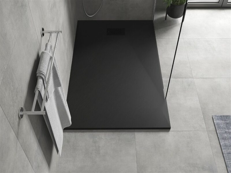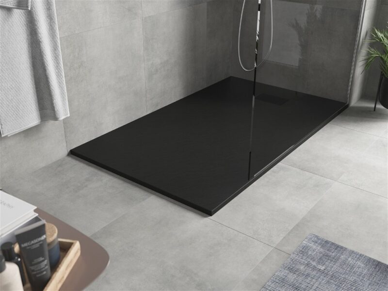 Technické dáta: Rozmer: 160x90x2, 6 cm Čierna farba Typ: Obdĺžnikový, Ultra plochý Inštalácia: Do podlahy alebo na podlahu Materiál: SMC – plast Kamenná štruktúra Možnosť rezania sprchovej vaničky Odolný produkt, ktorý sa nedeformuje Maximálna stabilita vďaka dobrej odolnosti proti nárazu Sada obsahuje sifón, ktorý sa čistí zhora Priemer odtoku: 90 mm Povrchová úprava mriežky: Čierna(GT) Ean: 5905315226716