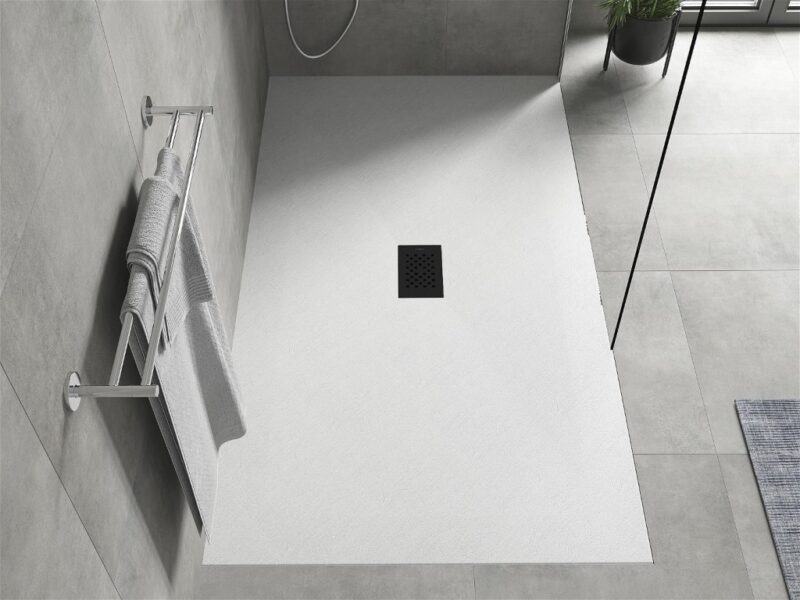 Technické dáta: Rozmer: 200x100x2, 6 cm biela farba Typ: Obdĺžnikový, Ultra plochý Inštalácia: Do podlahy alebo na podlahu Materiál: SMC – plast Kamenná štruktúra Možnosť rezania sprchovej vaničky Odolný výrobok, ktorý sa nedeformuje Maximálna stabilita vďaka dobrej odolnosti proti nárazu Sada obsahuje sifón, ktorý sa čistí zhora Priemer odtoku: 90 mm Povrchová úprava mriežky: Čierna(GT) Ean: 5905315225634