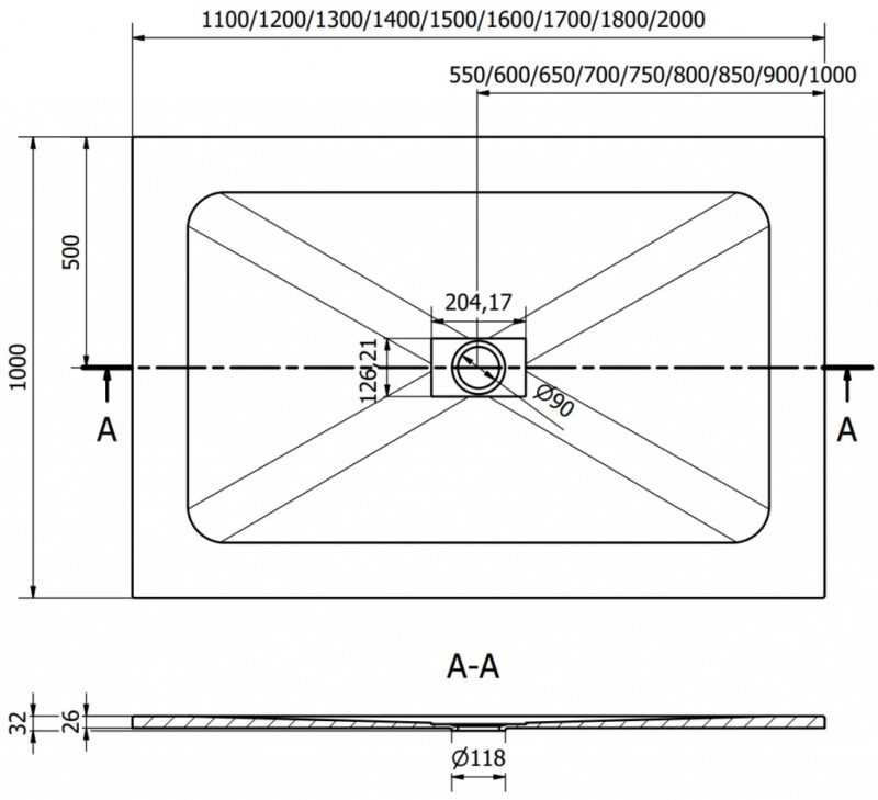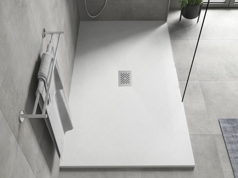 Technické dáta: Rozmer: 200x100x2, 6 cm biela farba Typ: Obdĺžnikový, Ultra plochý Inštalácia: Do podlahy alebo na podlahu Materiál: SMC – plast Kamenná štruktúra Možnosť rezania sprchovej vaničky Odolný výrobok, ktorý sa nedeformuje Maximálna stabilita vďaka dobrej odolnosti proti nárazu Sada obsahuje sifón, ktorý sa čistí zhora Priemer odtoku: 90 mm Povrchová úprava obruby: Inox(GT) Ean: 5905315224408