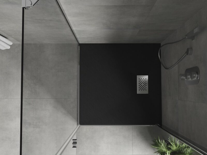 Technické dáta: Rozmer: 70x70x2, 6 cm Čierna farba Typ: štvorcový, ultra plochý Inštalácia: Do podlahy alebo na podlahu Materiál: SMC – plast Kamenná štruktúra Možnosť rezania sprchovej vaničky Odolný produkt, ktorý sa nedeformuje Maximálna stabilita vďaka dobrej odolnosti proti nárazu Sada obsahuje sifón, ktorý sa čistí zhora Priemer odtoku: 90 mm Povrchová úprava obruby: Inox(GT) Ean: 5905315225641