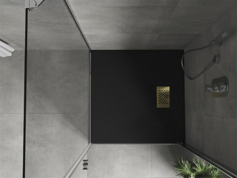 MEXEN/S – Hugo sprchová vanička SMC 80 x 80, čierna, krytka zlatá 42708080-G