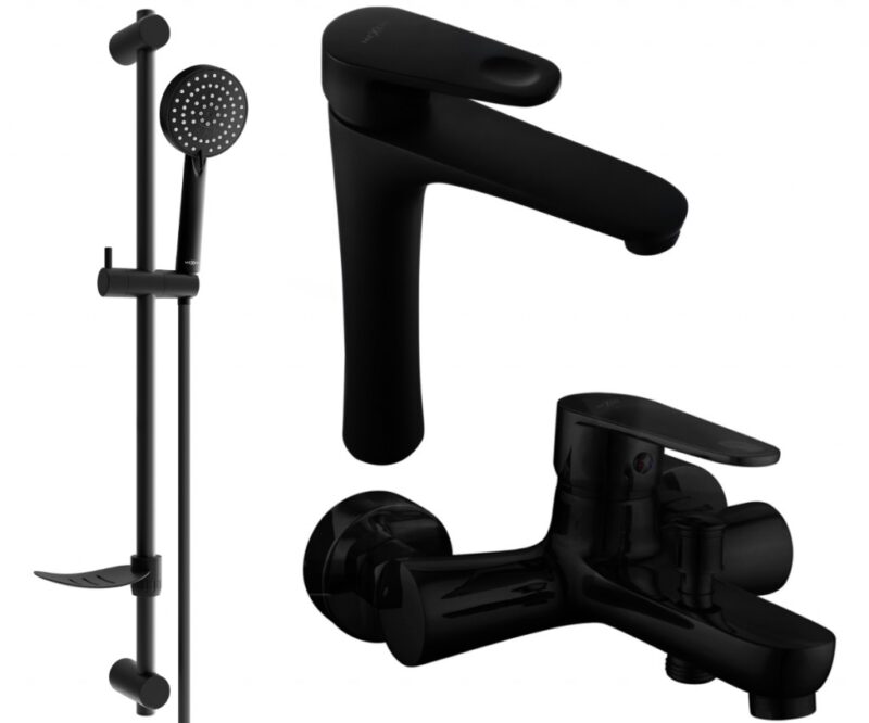 MEXEN/S – Kama DF75 Set umývadlovej a vaňovej batérie s príslušenstvom, čierna 72513DF75-70