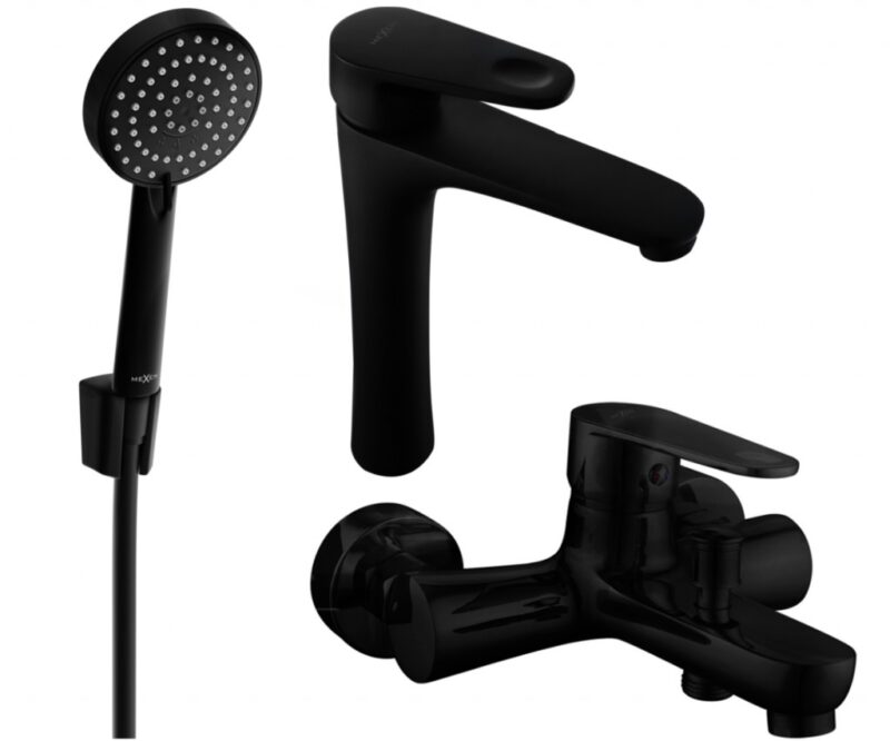 MEXEN/S – Kama R75 Set umývadlové a vaňové batérie s príslušenstvom, čierna 72513R75-70
