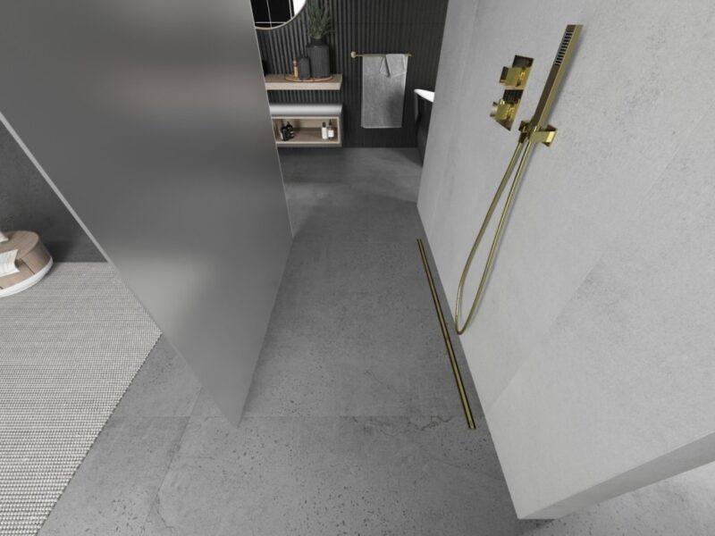 MEXEN/S – KIOTO samostatne stojaca sprchová zástena 110 x 200, matné sklo 8 mm, zlatá 800-110-002-50-30
