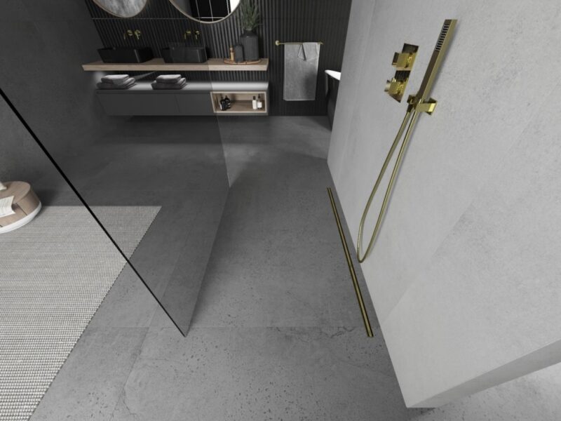 MEXEN/S – KIOTO samostatne stojaca sprchová zástena 110 x 200, transparent 8 mm, zlatá 800-110-002-50-00