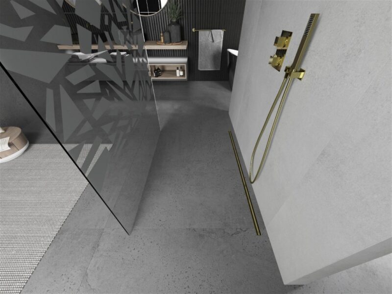 MEXEN/S – KIOTO samostatne stojaca sprchová zástena 110 x 200, transparent/biela vzor 8 mm, zlatá 800-110-002-50-85