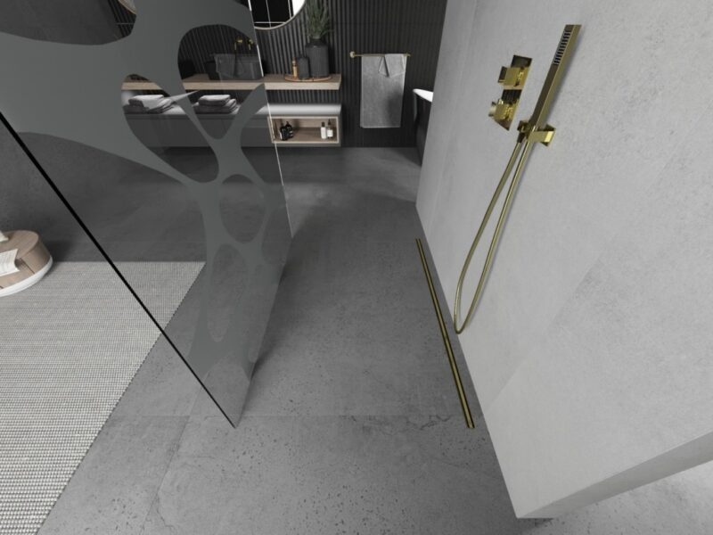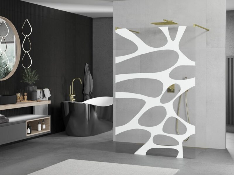 MEXEN/S – KIOTO samostatne stojaca sprchová zástena 110 x 200, transparent/biela vzor 8 mm, zlatá 800-110-002-50-97