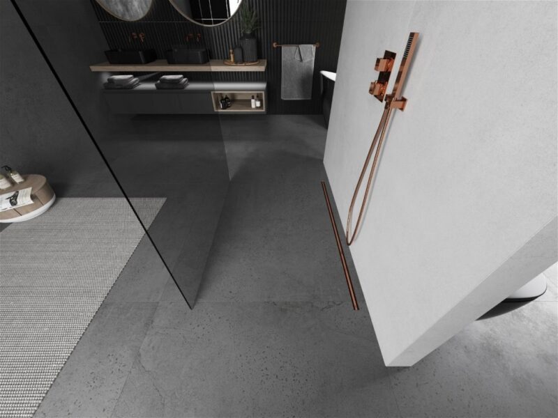 MEXEN/S – Kioto samostatne stojaca sprchová zástena 115 x 200, transparent 8 mm, meď kartáčovaná 800-115-002-65-00