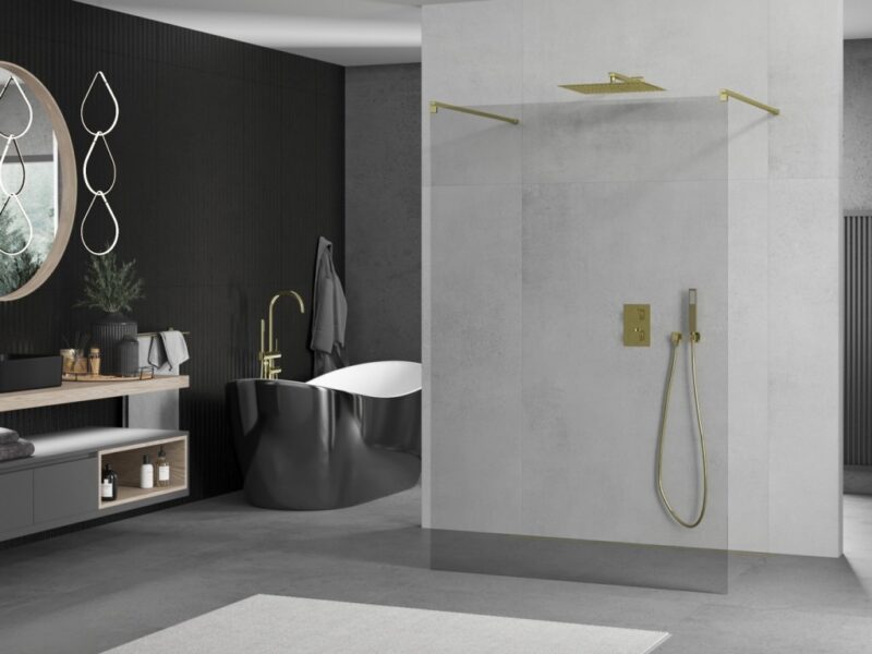 MEXEN/S – KIOTO samostatne stojaca sprchová zástena 120 x 200, transparent 8 mm, zlatá 800-120-002-50-00