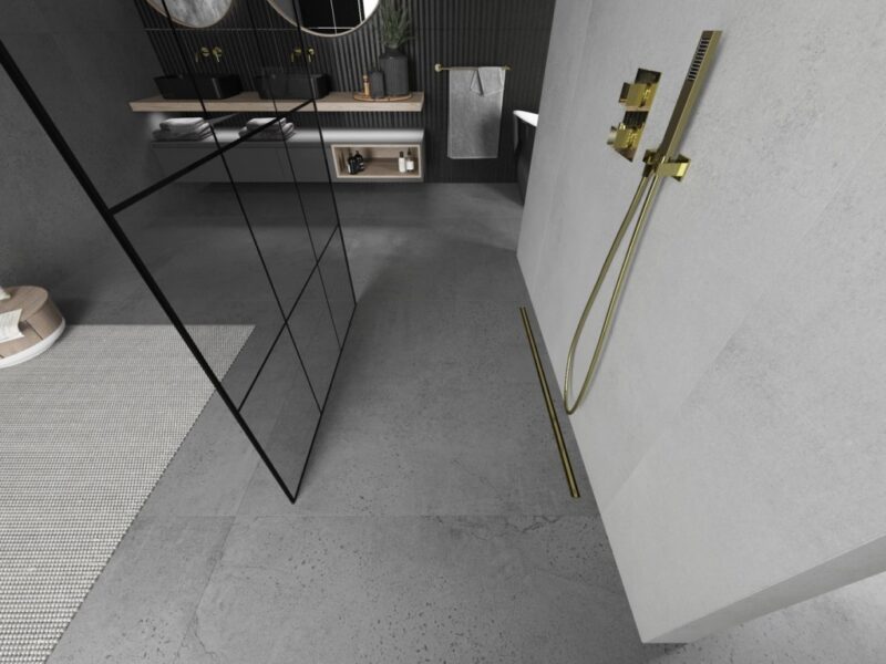 MEXEN/S – KIOTO samostatne stojaca sprchová zástena 120 x 200, transparent/čierna vzor 8 mm, zlatá 800-120-002-50-77