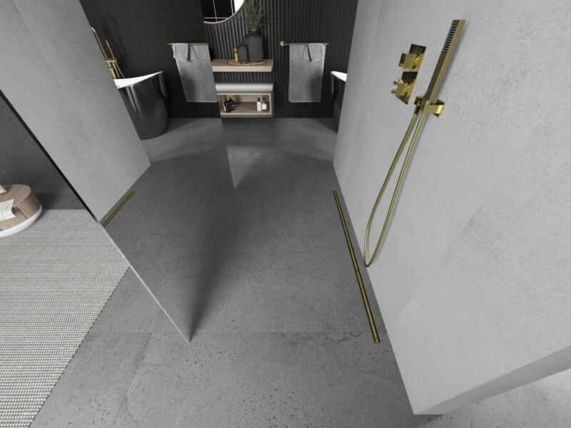 MEXEN/S – KIOTO samostatne stojaca sprchová zástena 120 x 200, zrkadlové, zlatá 800-120-002-50-50