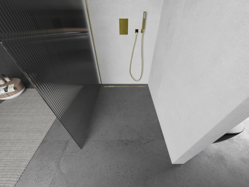 MEXEN/S – Kioto Sprchová zástena WALK-IN 100 x 200, prúžky 8 mm, zlatá 800-100-101-50-09