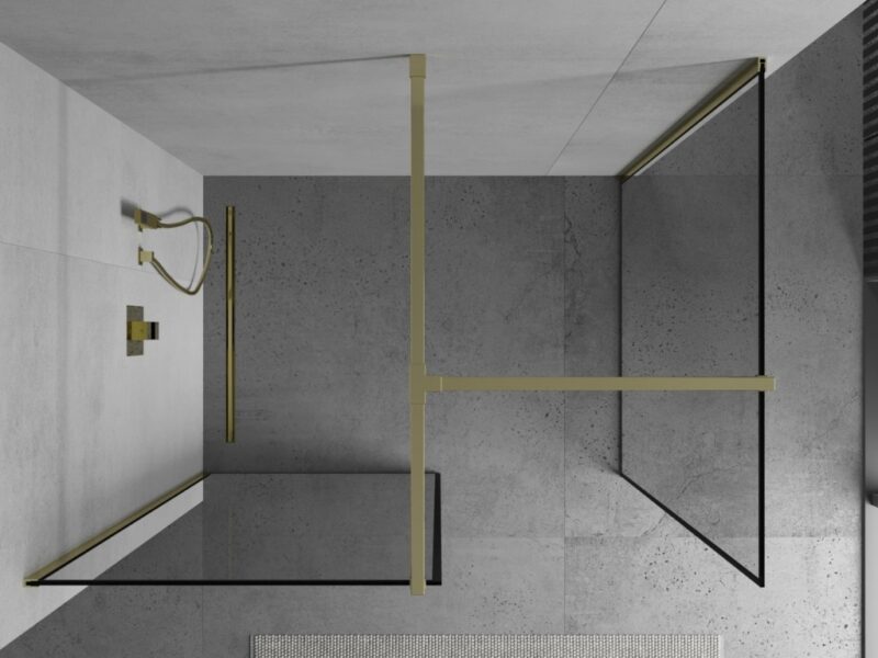 Špecifikácia produktu: Šírka: 100×80 cm (stena X – 100 cm, stena Y – 80 cm) Výška: 200 cm Inštalácia: Univerzálna Farba skla: Čierny vzor Povrchová úprava: zlatá Typ skla: Tvrdené Hrúbka skla: 8 mm Profil: Hliník Držiak: Nerezová oceľ Dĺžka max. držiak: 150 cm Možnosť odrezania držiaka Obliečka na jednoduché čistenie Vyrovnanie nerovností steny Možno namontovať na sprchovú vaničku alebo dlaždice(GT) Ean: 5905315387240