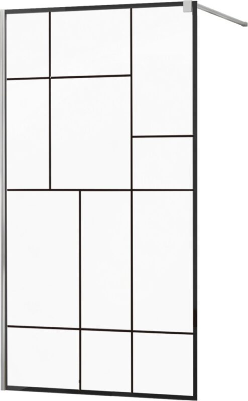 MEXEN/S – KIOTO Sprchová zástena WALK-IN 100×200 cm 8 mm, chróm, čierny vzor 2 800-100-101-01-78