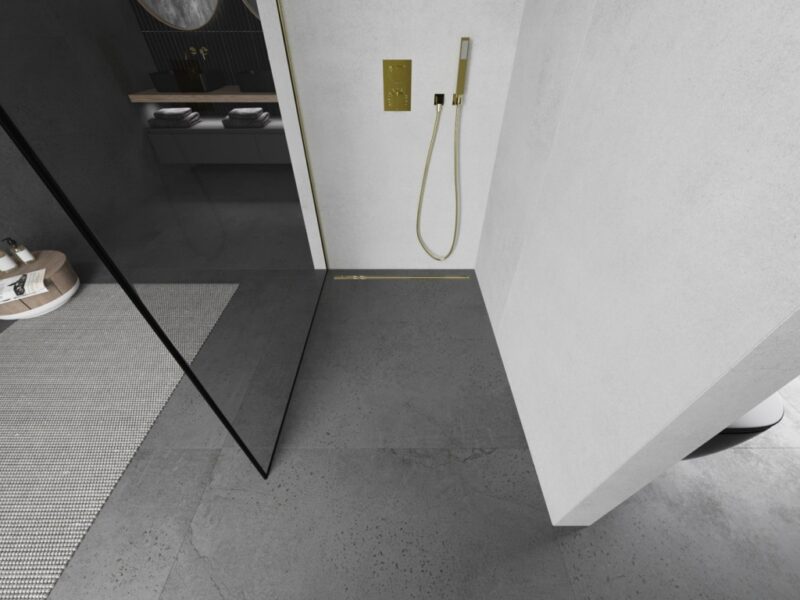 MEXEN/S – KIOTO Sprchová zástena WALK-IN 100×200 cm 8 mm, zlatá, čierny profil 800-100-101-50-70