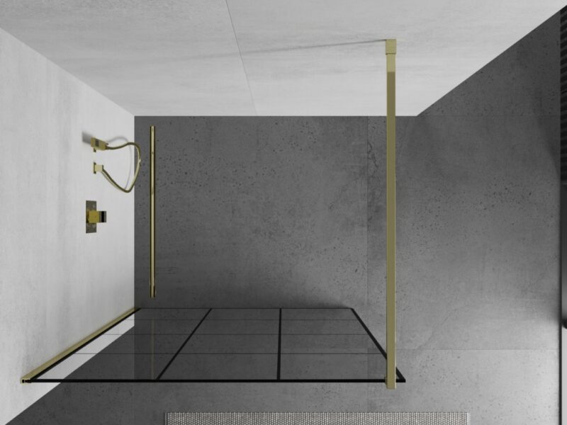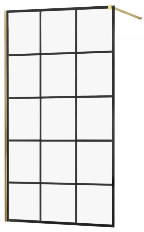 MEXEN/S – KIOTO Sprchová zástena WALK-IN 100×200 cm 8 mm, zlatá, čierny vzor 1 800-100-101-50-77