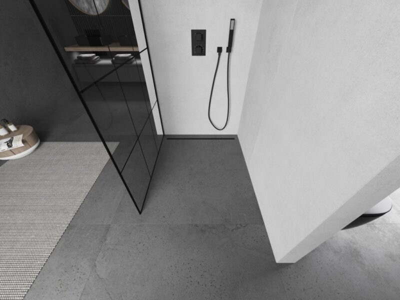 MEXEN/S – KIOTO Sprchová zástena WALK-IN 110×200 cm 8 mm, čierna, čierny vzor 1 800-110-101-70-77