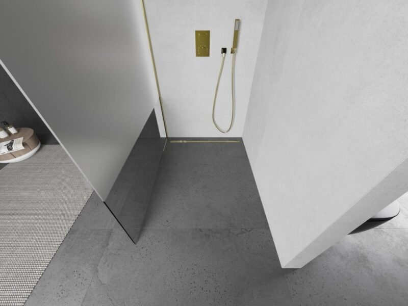 MEXEN/S – KIOTO Sprchová zástena WALK-IN 110×200 cm 8 mm, zlatá, Transparent/matné sklo 800-110-101-50-35