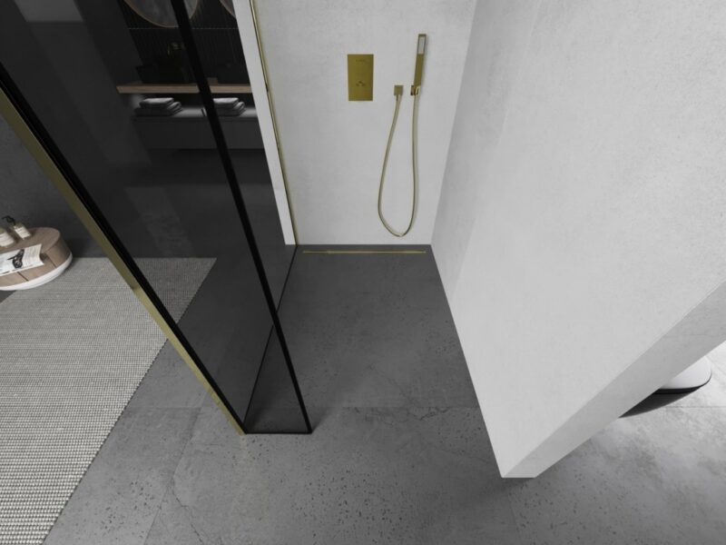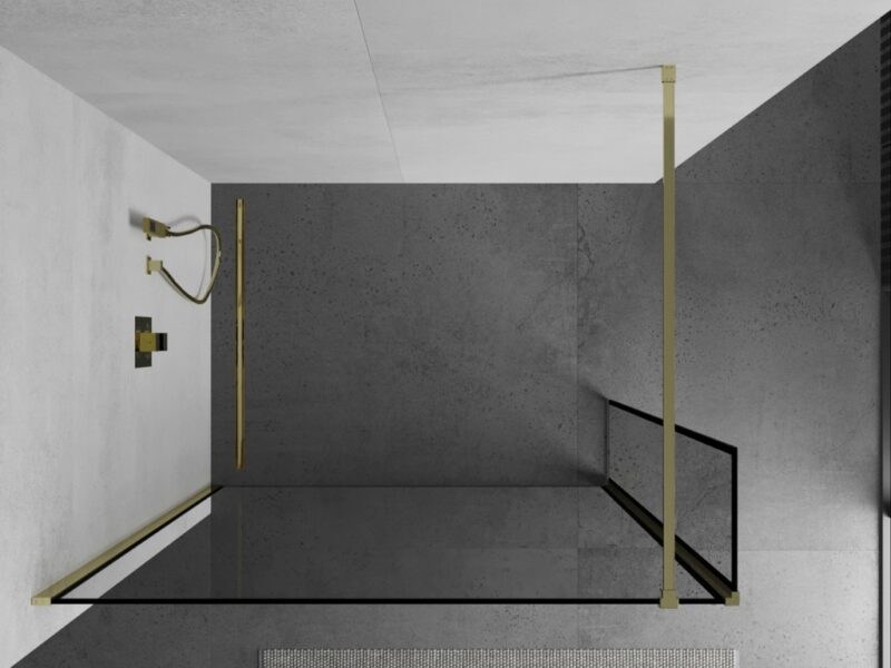 Špecifikácia produktu: Šírka: 120×40 cm (stena X – 120 cm, stena Y – 40 cm) Výška: 200 cm Inštalácia: Univerzálna Farba skla: Čierny vzor Povrchová úprava: zlatá Typ skla: Tvrdené Hrúbka skla: 8 mm Profil: Hliník Držiak: Nerezová oceľ Dĺžka max. držiak: 150 cm Možnosť odrezania držiaka Obliečka na jednoduché čistenie Vyrovnanie nerovností steny Možno namontovať na sprchovú vaničku alebo dlaždice(GT) Ean: 5905315341051