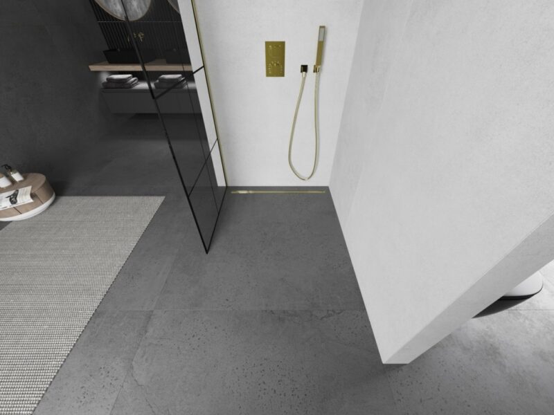 MEXEN/S – KIOTO Sprchová zástena WALK-IN 90×200 cm 8 mm, zlatá, čierny vzor 1 800-090-101-50-77