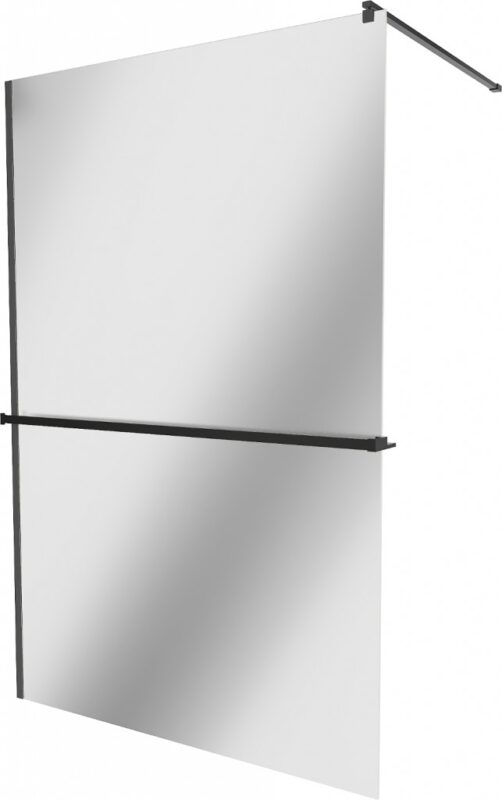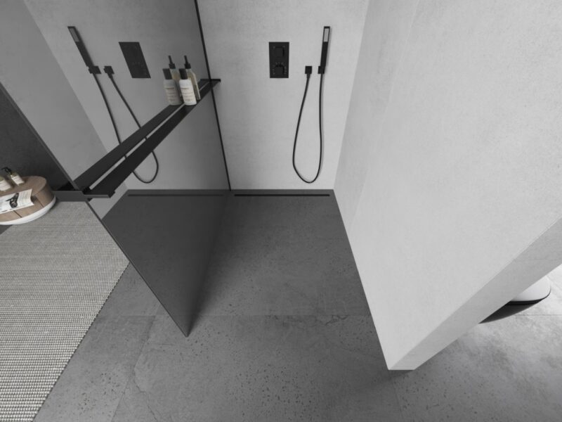 MEXEN/S – KIOTO Sprchová zástena WALK-IN s poličkou a držiakom uterákov 70 x 200, zrkadlové 8 mm, čierna – 800-080-121-70-50 800-070-121-70-50