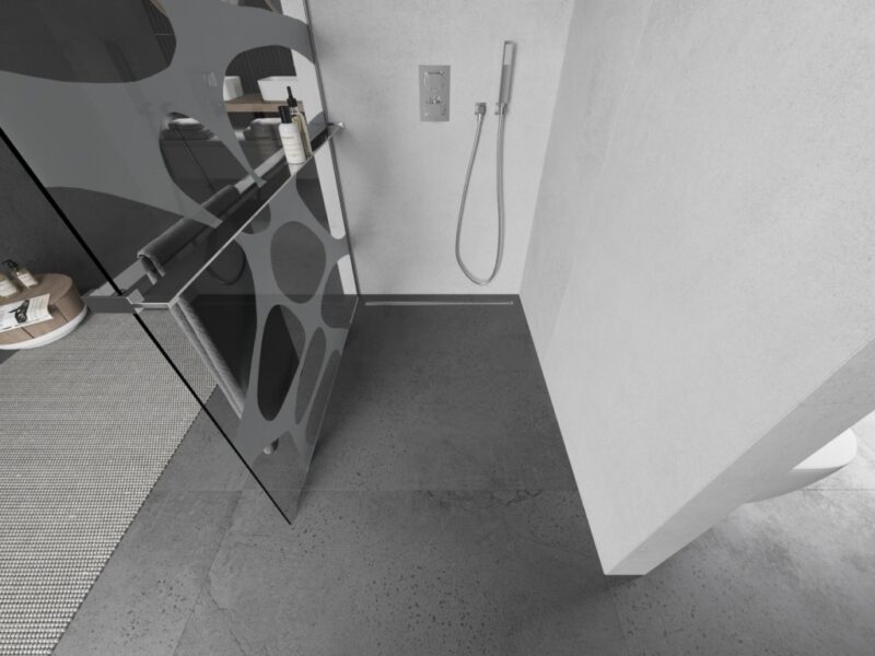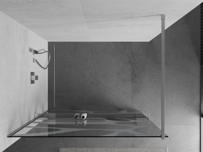 MEXEN/S – KIOTO Sprchová zástena WALK-IN s poličkou a držiakom uterákov 80 x 200, biely dekor 8 mm, chróm 800-080-121-01-97