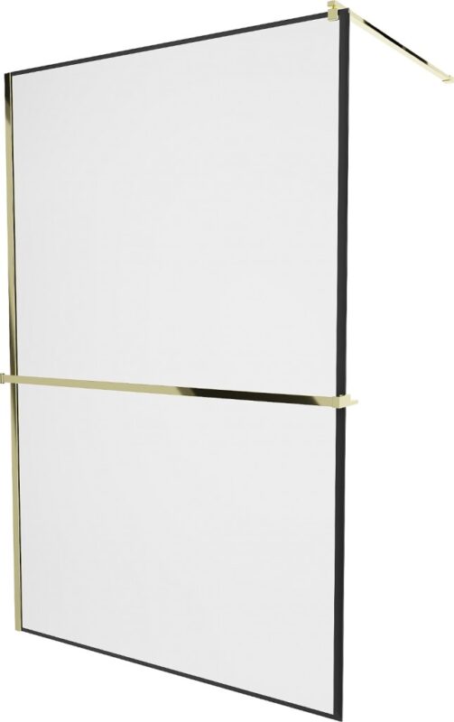 MEXEN/S – KIOTO Sprchová zástena WALK-IN s poličkou a držiakom uterákov 80 x 200, transparent/čierna 8 mm, zlatá 800-080-121-50-70