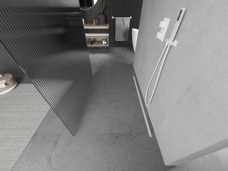 MEXEN/S – Kioto Sprchová zástena WALK-IN voľne stojaca 110 x 200, prúžky 8 mm, biela 800-110-002-20-09