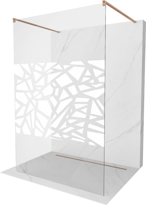 MEXEN/S – Kyoto samostatne stojaca sprchová zástena 110 x 200, biely vzor 8 mm, meď kartáčovaná 800-110-002-65-85