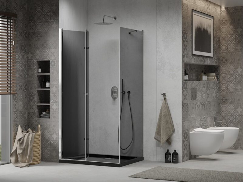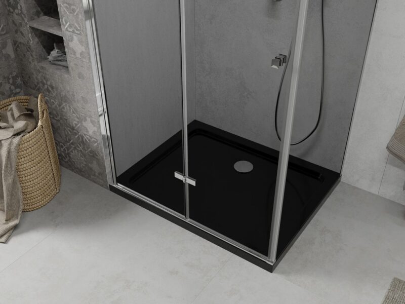 MEXEN/S – Lima sprchovací kút 100×90, grafit, chróm + čierna vanička so sifónom 856-100-090-01-40-4070