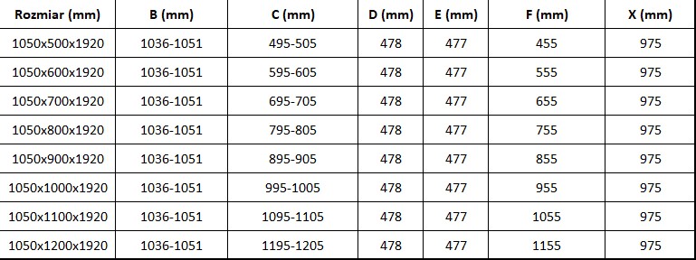 Veľkosť: 105 x 100 cm (dvere 105 cm, stena 100 cm)