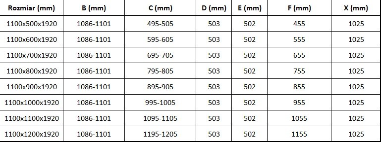 Veľkosť: 110×100 cm (dvere 110 cm, stena 100 cm)